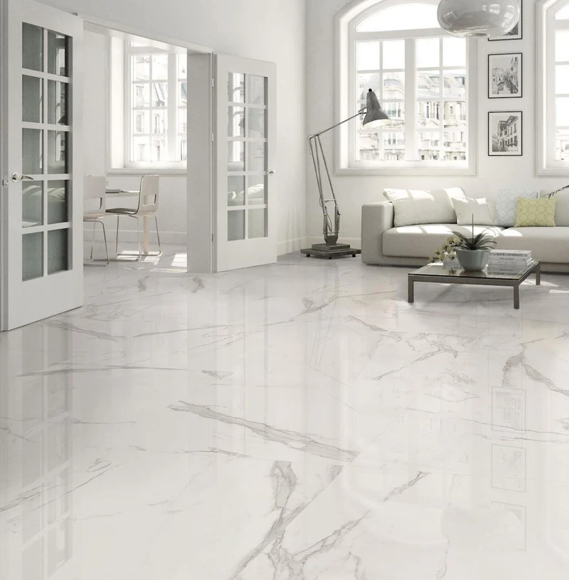 De Forno Glanswit marmerlook tegel van Van Yild Tegels is een hoogwaardige keramische XXL vloer- en wandtegel die luxe en rust uitstraalt. Met het royale formaat van 120×120 cm creëer je een ruimtelijk en modern effect in je interieur, keuken of badkamer. De glanzend witte marmerlook zorgt voor een frisse, elegante uitstraling en past perfect binnen zowel moderne als minimalistische woonstijlen.