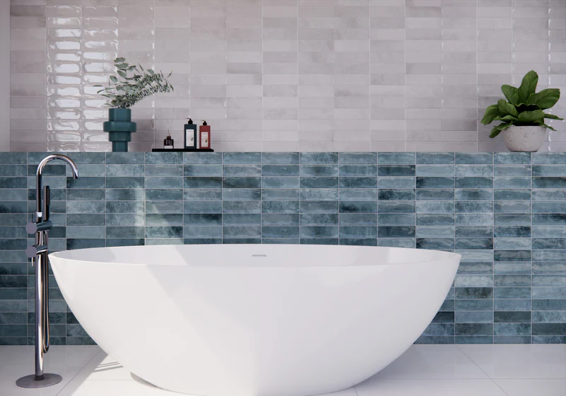 Breng licht en karakter in je interieur met de keramische decortegel Grava Blauw 31×60 cm van Van Yild Tegels.