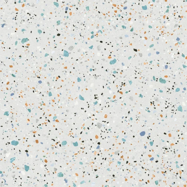 Geef je badkamer of keuken een vintage look met deze terrazzo vloertegel in wit kleur (60×60 cm).